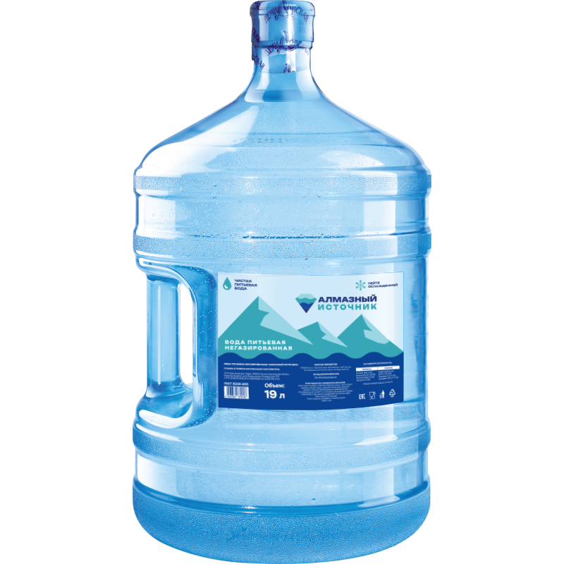 В заказ добавляется вода и пустая бутылка 19 литров из поликарбоната. Стоимость бутылки - 450 р.